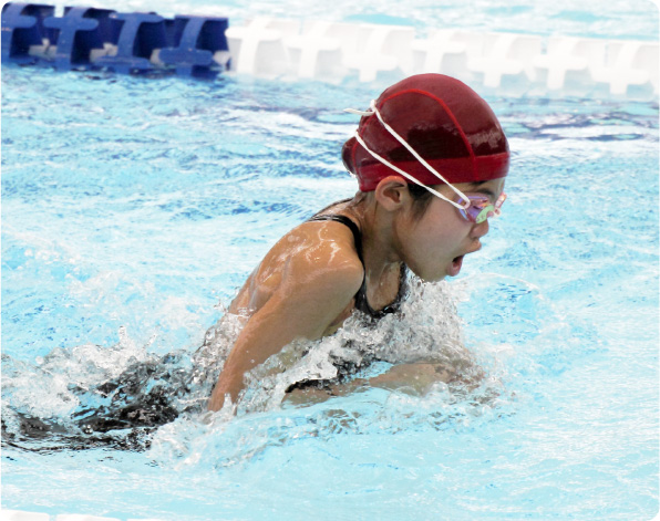 年齢と泳力に応じて、水と親しみながら泳ぐ技能を身につけていきます。水慣れ級から、バタフライの基本4泳法の習得、個人メドレーと、泳ぎの高い技術を習得します。